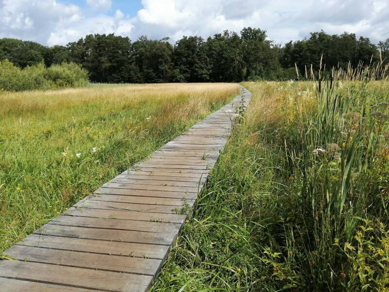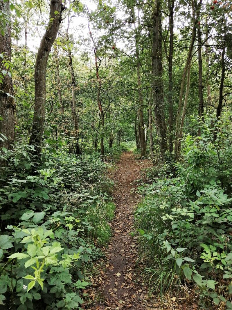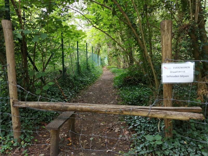 Verder lopend over een grindweg en weer een stukje geasfalteerd fietspad moet je via een overstapje weer een bosgebied in.