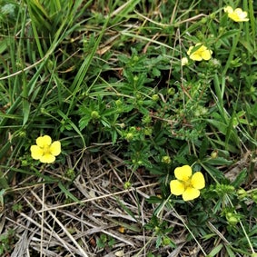 Onderweg staan diverse planten langs de weg, zoals de Voorjaarsganzerik (linkse foto); struiken met inmiddels rijpe bosbessen (middelste foto) en het bloeiende Duizendblad (rechtse foto).