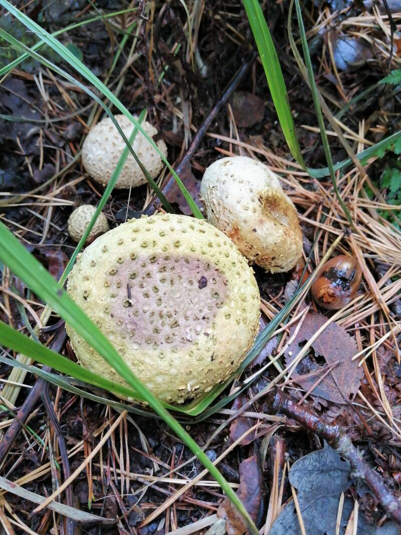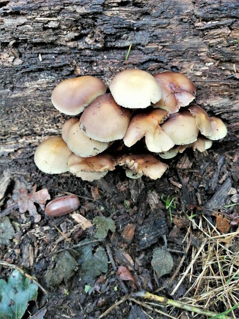 Langs het wandelpad door de Geelders staan diverse soorten paddenstoelen in allerlei vormen.