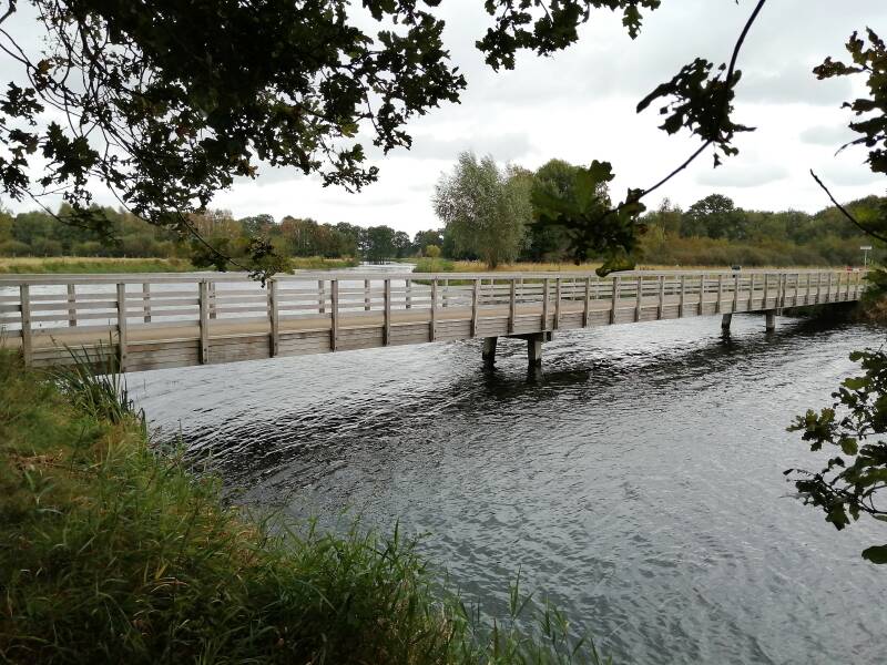 Het wandelpad komt uit bij een smalle brug over de Dommel. De route gaat hier vóór deze brug rechts over het pad wat tevens een fietspad is. Verderop verlaat je het fietspad en loop je over een smal pad langs de Dommel.
