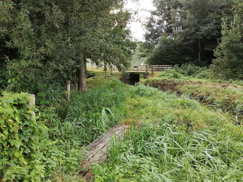 Een stukje verder gaat het graspad langs de “Beeksche Waterloop”, een zijriviertje van de Dommel.