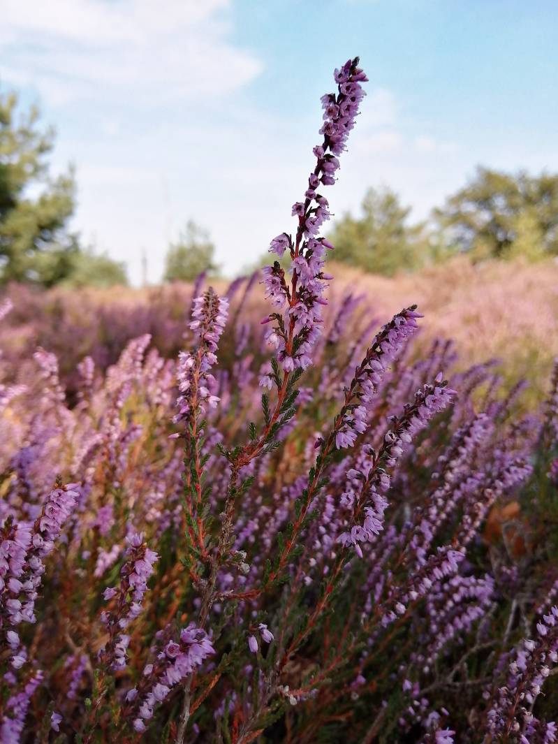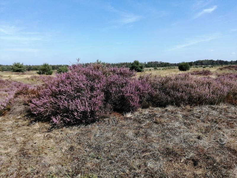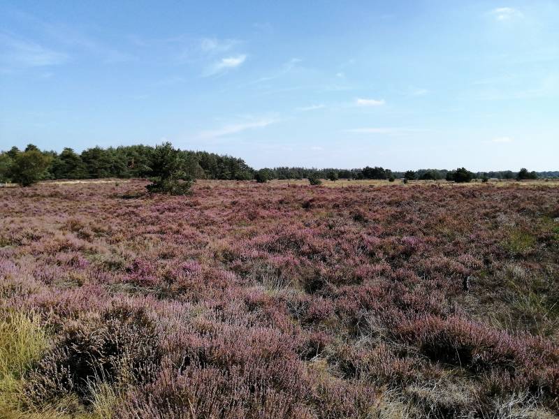 Op de Groote Heide aangekomen kun je alleen maar genieten. In augustus staat de heide overal prachtig in bloei.