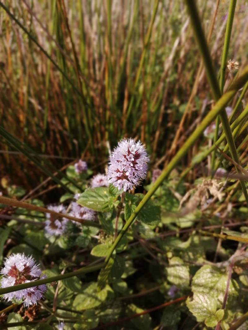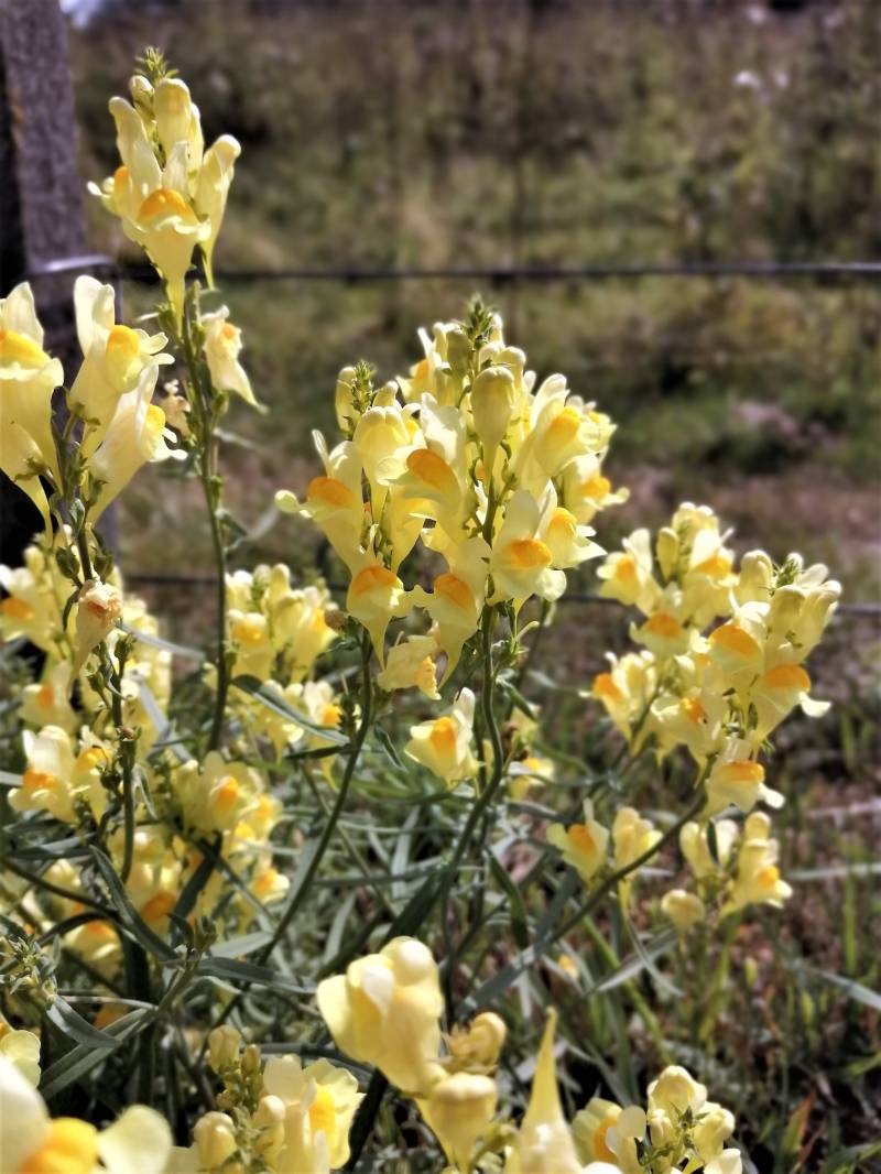Via graspaden loop je door het natuurgebied waar in augustus diverse bloemen bloeien, zoals - van links naar rechts - de gele bloemen van het Vlasbekje en de mooie kleuren van het Aalkruid en de Grote Kattenstaart.