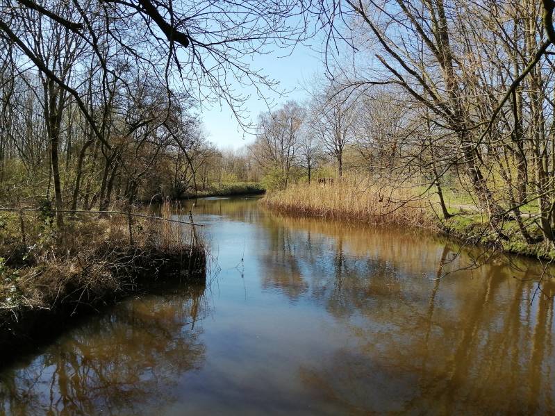 Via een brede bomenlaan kom je weer uit in een bos- en waterrijk gebied. De paden zijn soms helemaal overstroomd, waardoor je een alternatief moet zoeken om verder te komen. Gelukkig is dat geen probleem en verderop kun je de route weer gewoon oppikken.