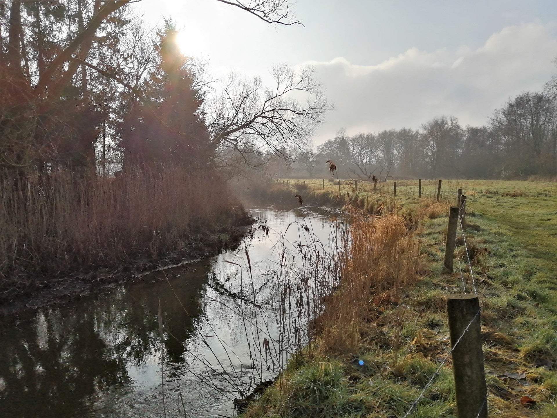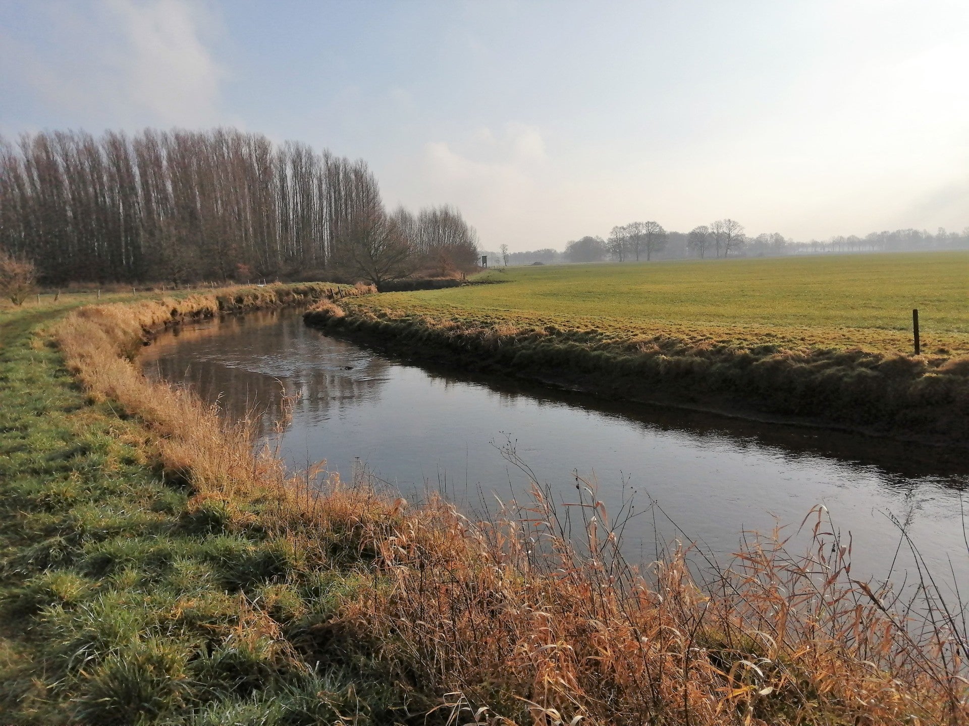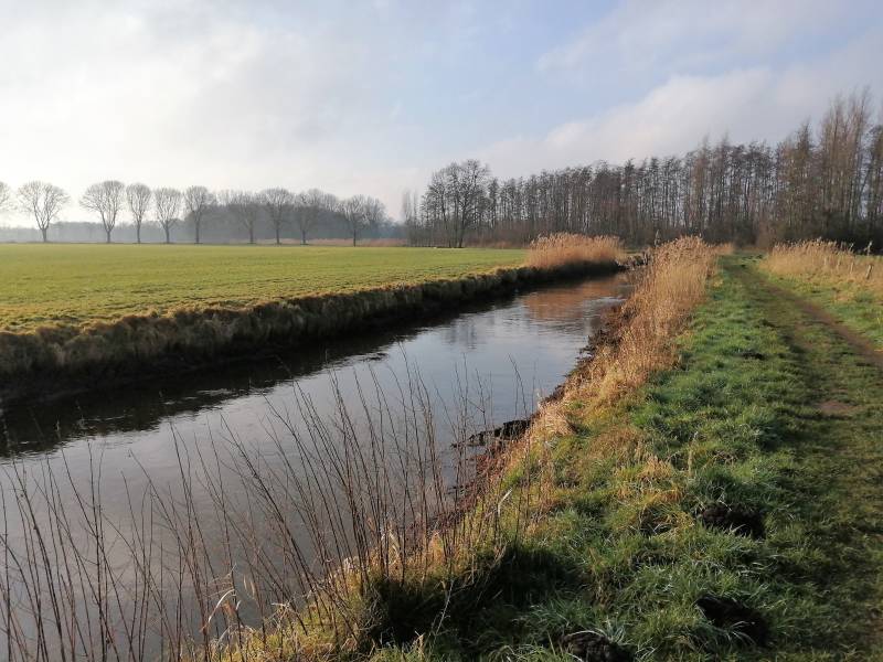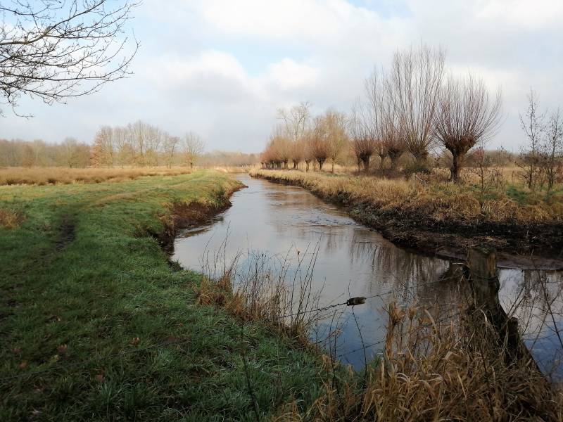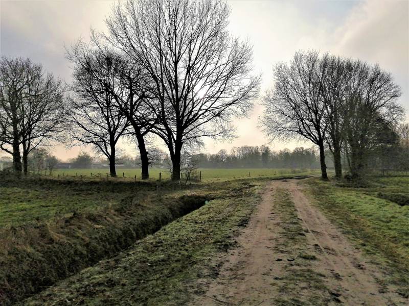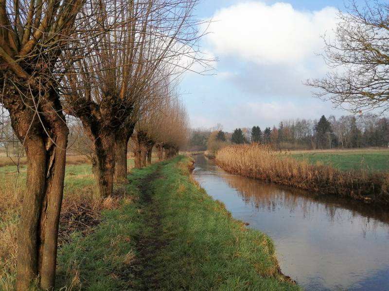 In een winters zonnetje lopen we verderop langs mooie knotwilgen richting het buurtschap Achterste Brug.