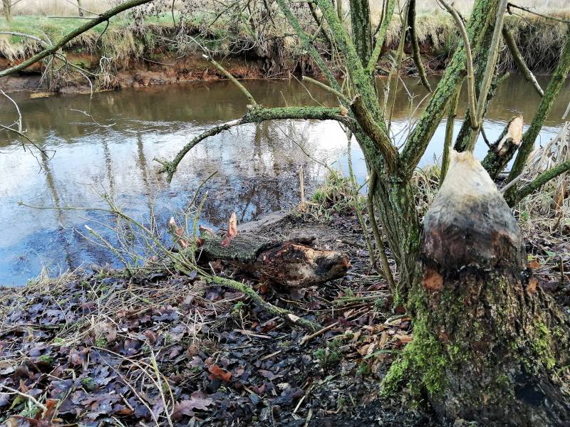 Onderweg zagen we sporen van de bever die zich aardig thuis voelt in dit waterrijke gebied. ( zie foto rechtsonder).