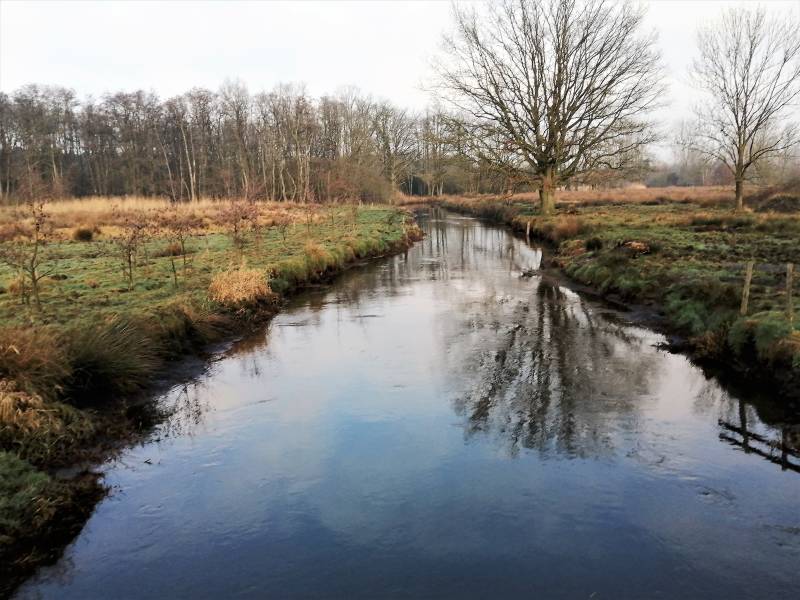 Via diverse paden komen we uit op de Peedijk waar we na een brug over de Dommel weer naast de rivier verder wandelen richting Borkel en Schaft.