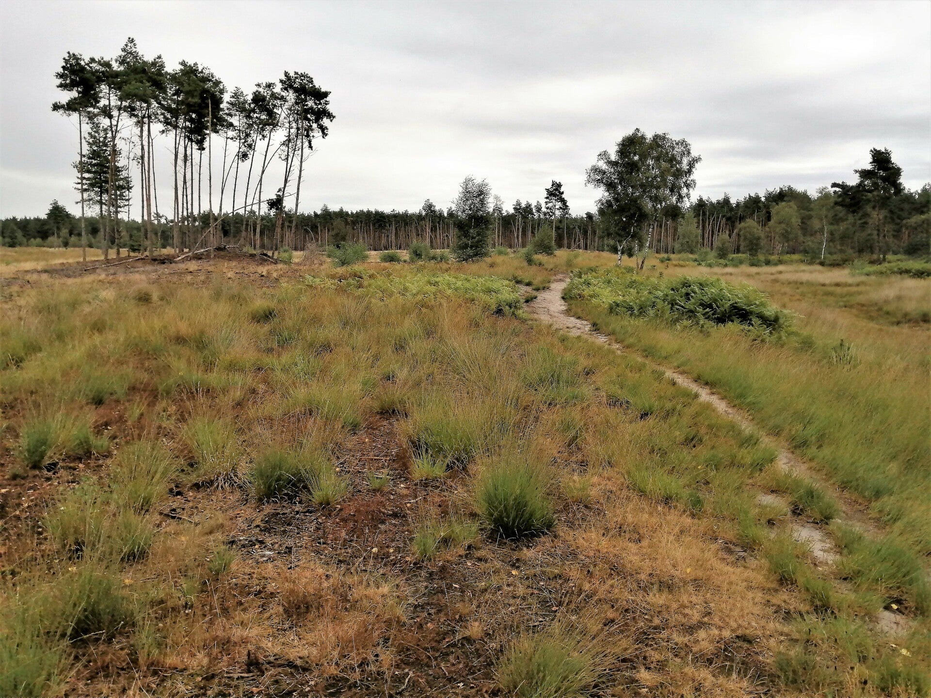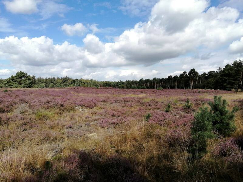 Na de vele bospaden kom je bij een groot heideveld aan je rechterhand waar de route links omheen loopt (punt 8 van de routebeschrijving).