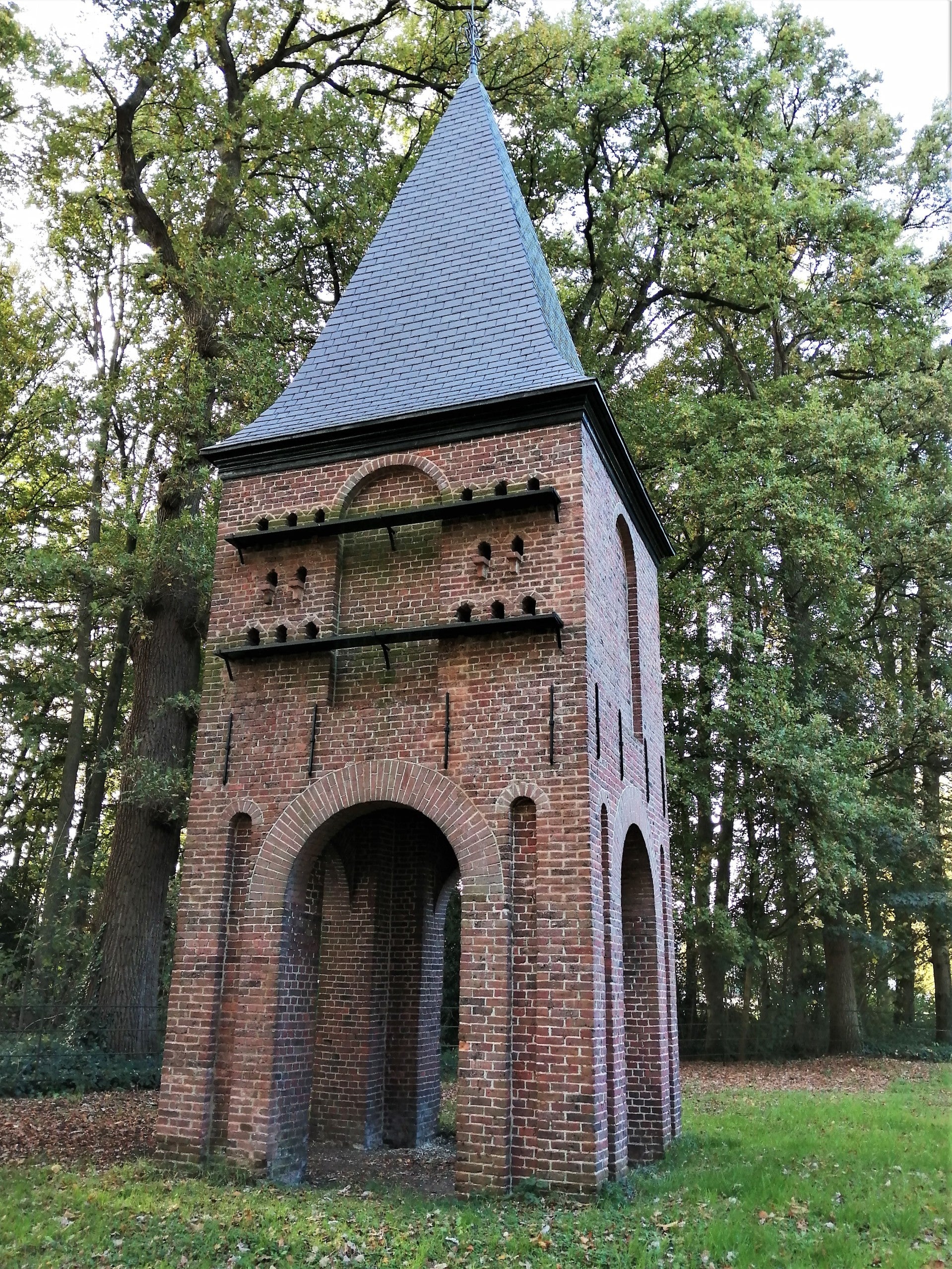 Aan het begin van de oprijlaan naar kasteel Heeze staat een duiventoren.