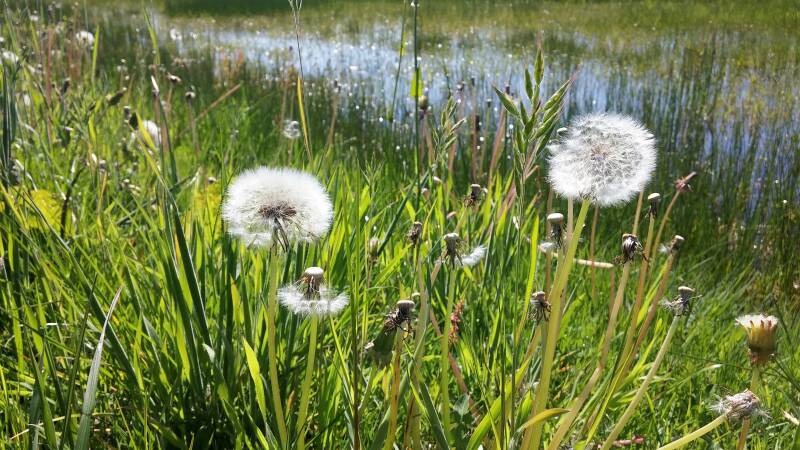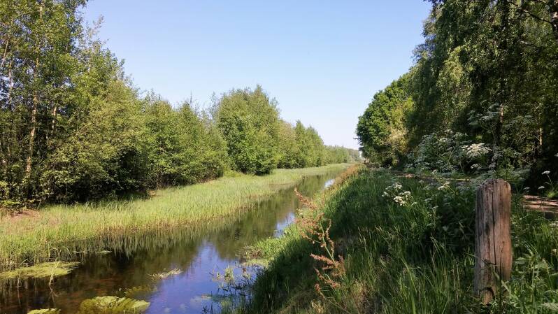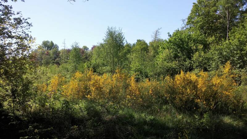 Na landhuis Heerenbeek volgt een groot natuurgebied waar allerlei soorten gras, mos en bloemen zijn te zien. De Ereprijs en de Waterviolier bloeien er.