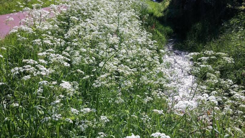 Niet ver van huis ligt een mooi stukje Brabant tussen Boxtel en Best, het Groene Woud genaamd. Daar heb ik een deel van de “Edelhertenroute” gelopen. Gestart in Boxtel en dan via Lennisheuvel. Onderweg bloeit op veel plaatsen in de bermen het bekende Fluitekruid met de witte bloemschermen.