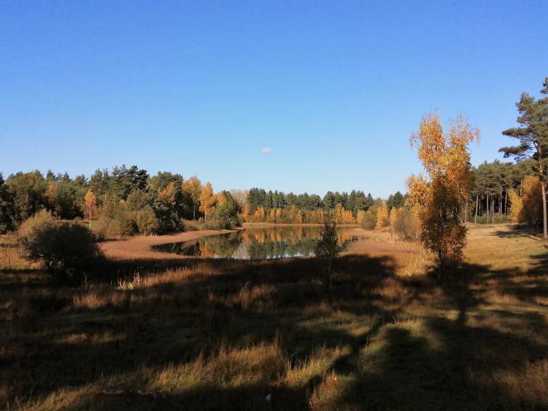 Hier en daar liggen ook mooie vennetjes verscholen en je loopt over prachtige stukjes heide.