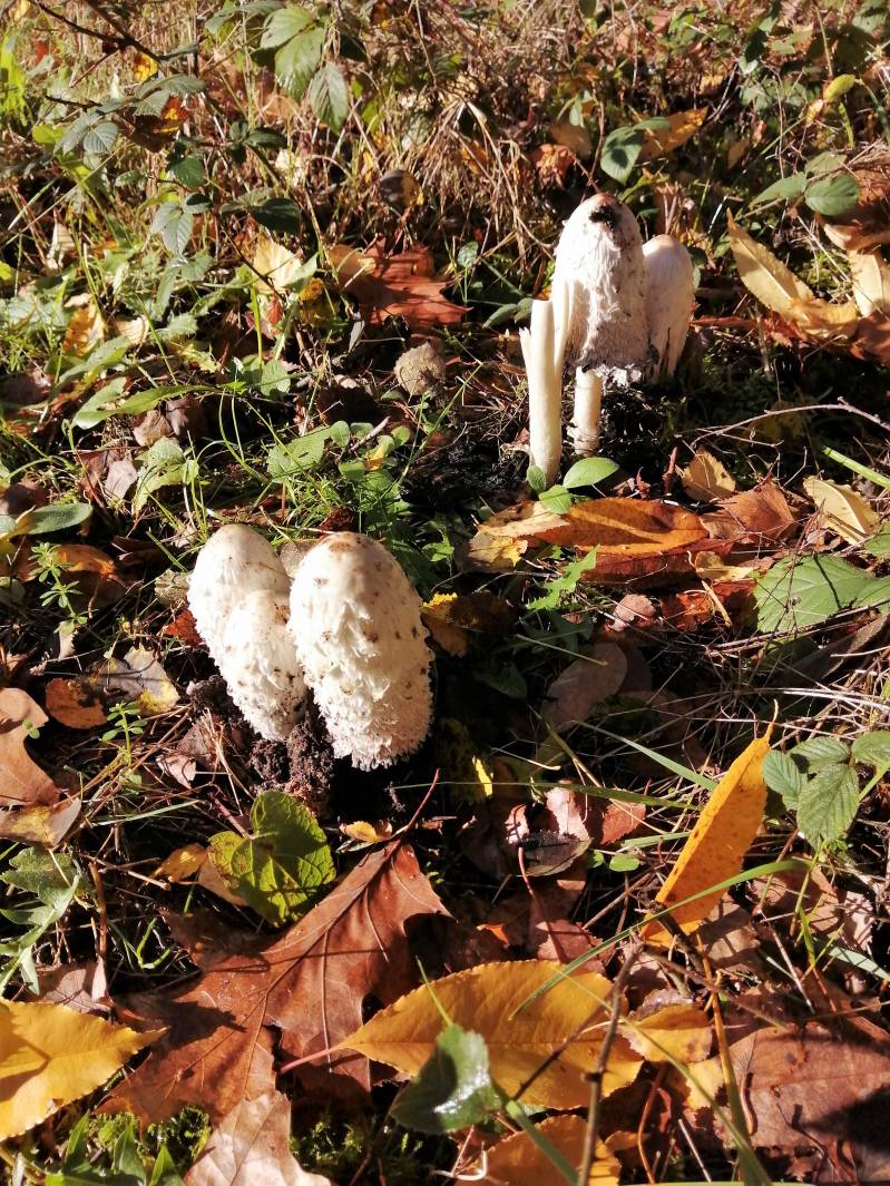 Bovenop deze voormalige stortplaats bloeide het Jacobskruiskruid en ik zag er de Parasolzwam en de Witte Kluifzwam (foto's van links naar rechts).