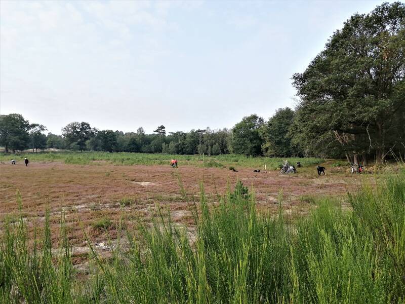 Op een lager gelegen open plek zag ik collega-vrijwilligers van Staatsbosbeheer bezig met het verwijderen van jonge berken en dennen.