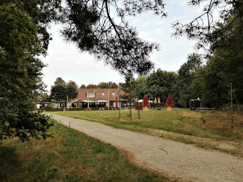 Na het grafveld kom je in de buurt van Restaurant De Busjop waar vlakbij de heide in deze tijd van het jaar nog mooie paarse kleuren laat zien.