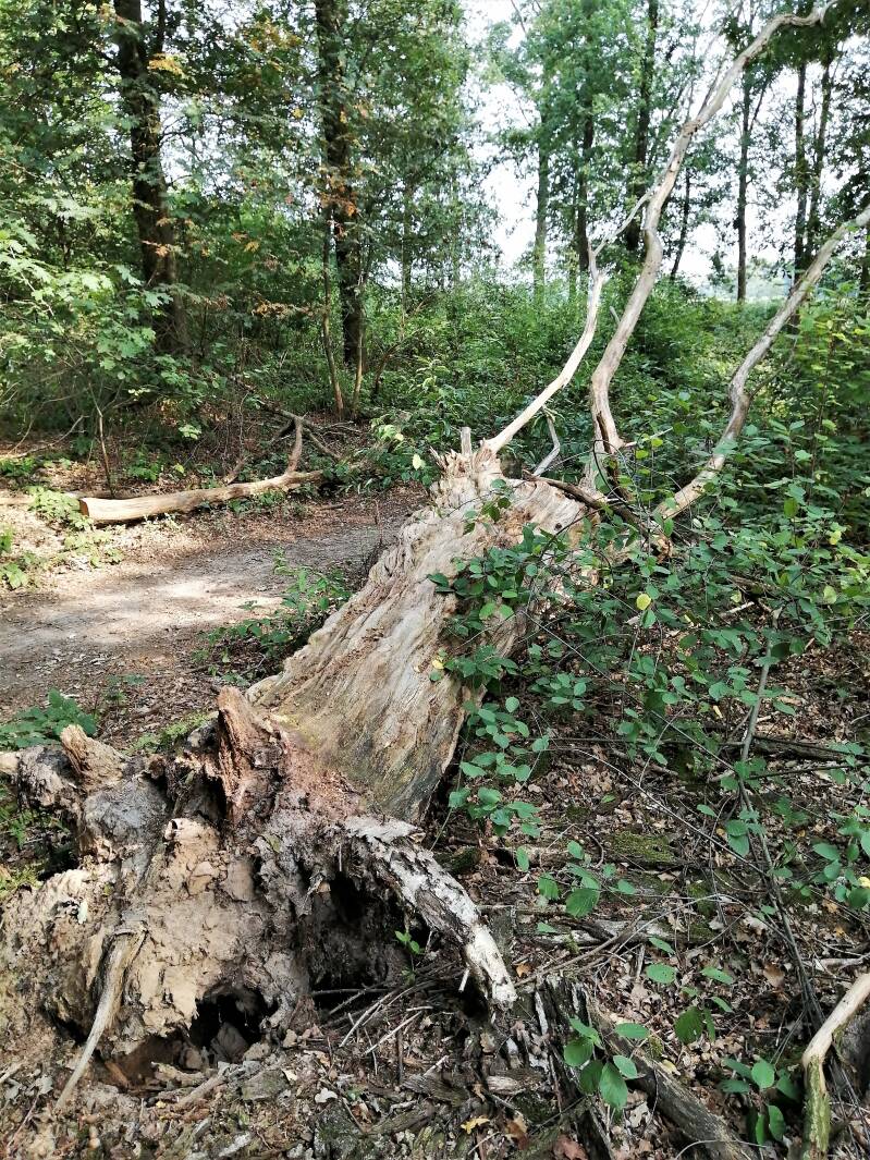 Vroeger ruimde men omgewaaide bomen en veel dood hout op, maar het blijft nu liggen als het niet in de weg ligt. Het is ook veel natuurlijker.