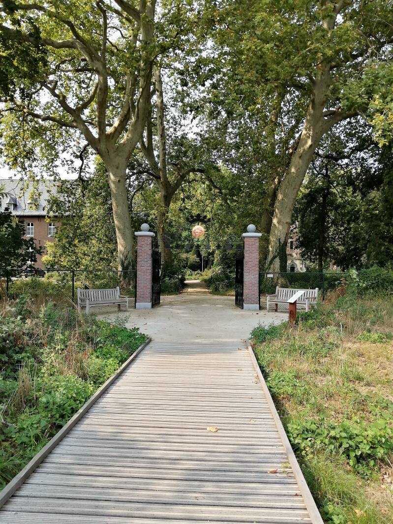 Bij punt 8 van de routebeschrijving gaat de route tegenover een vlonderpad naar rechts. Ik was benieuwd waar dat vlonderpad naar toe leidde. Het bleek de toegang te zijn naar de tuin van Zorgcentrum St. Elisabeth.