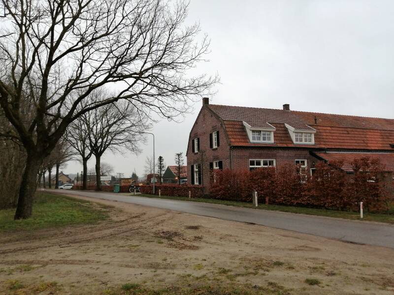 De route verder volgend (punt 3 van de routebeschrijving) over een lange veldweg, waarlangs ook een woning met theetuin (alleen open in weekenden buiten de wintertijd) kom je bij een brug over de Tungelroyse Beek.