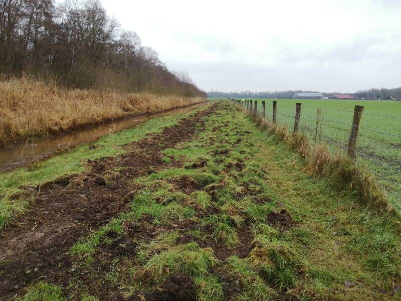Duidelijk is op de laatste foto (hieronder) te zien dat wilde zwijnen hier erg actief zijn. Daarom hebben boeren en tuinders op vele plaatsen hun percelen afgezet met stevig gaas en prikkeldraad. Op dezelfde foto is rechts op de achtergrond Hoeve Lieshout te zien.