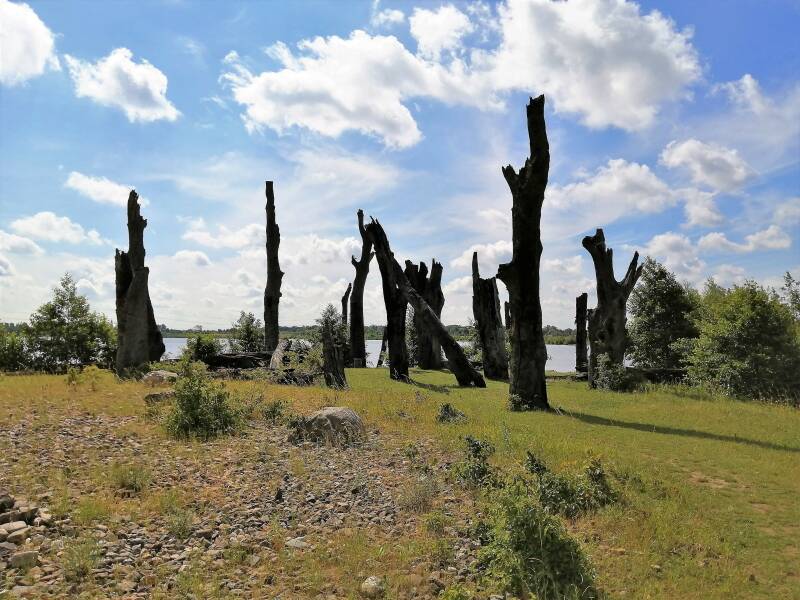 Ze staan nu als een soort van prehistorisch woud aan de oever van de Molenplas.