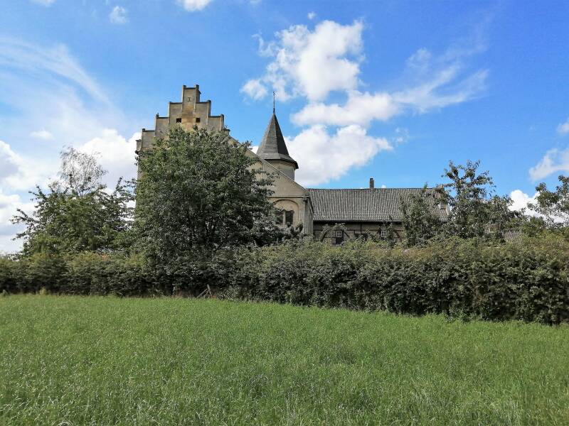 Op de foto rechtsboven en linksonder staat de hoeve rechts van het kasteel.