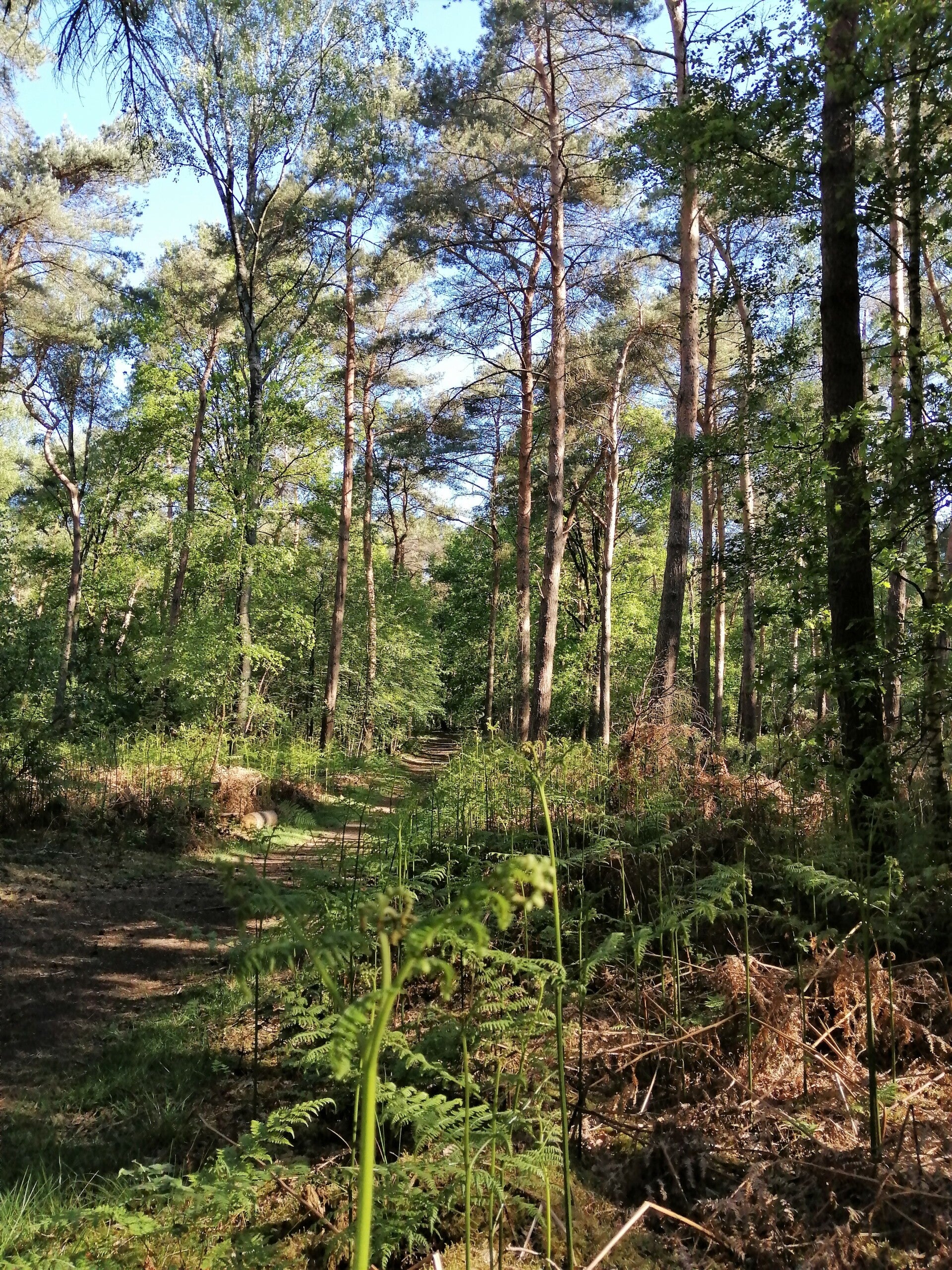 In het bos loop je over mooie paden, waar jonge Koningsvarens hun best doen om zo hoog mogelijk te groeien. Ook ligt er een klein stuifduingebied.
