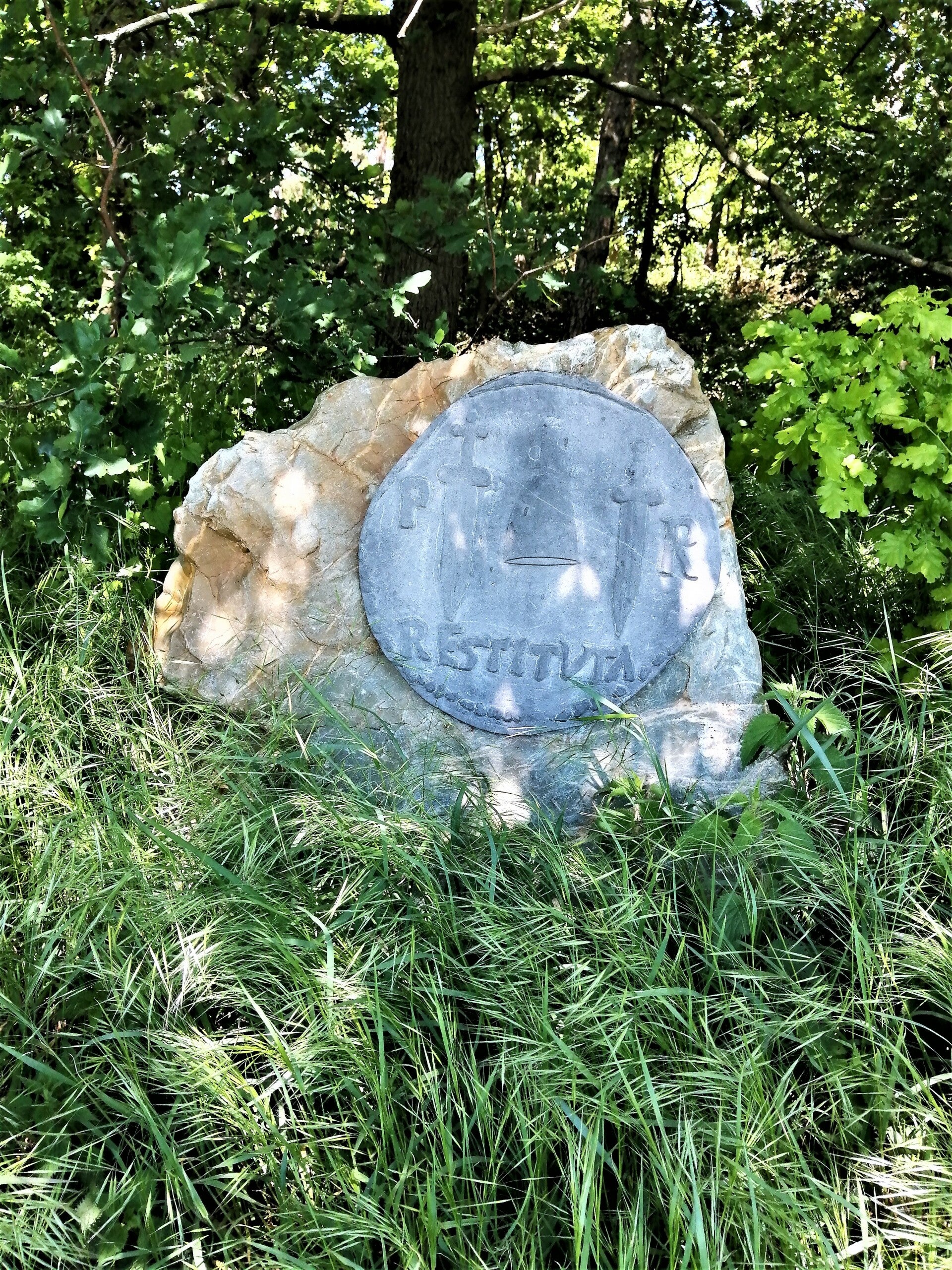 Bij een brugje stuit je op een informatiepaneel. Er wordt melding gemaakt van de vondst van een Romeinse schat.