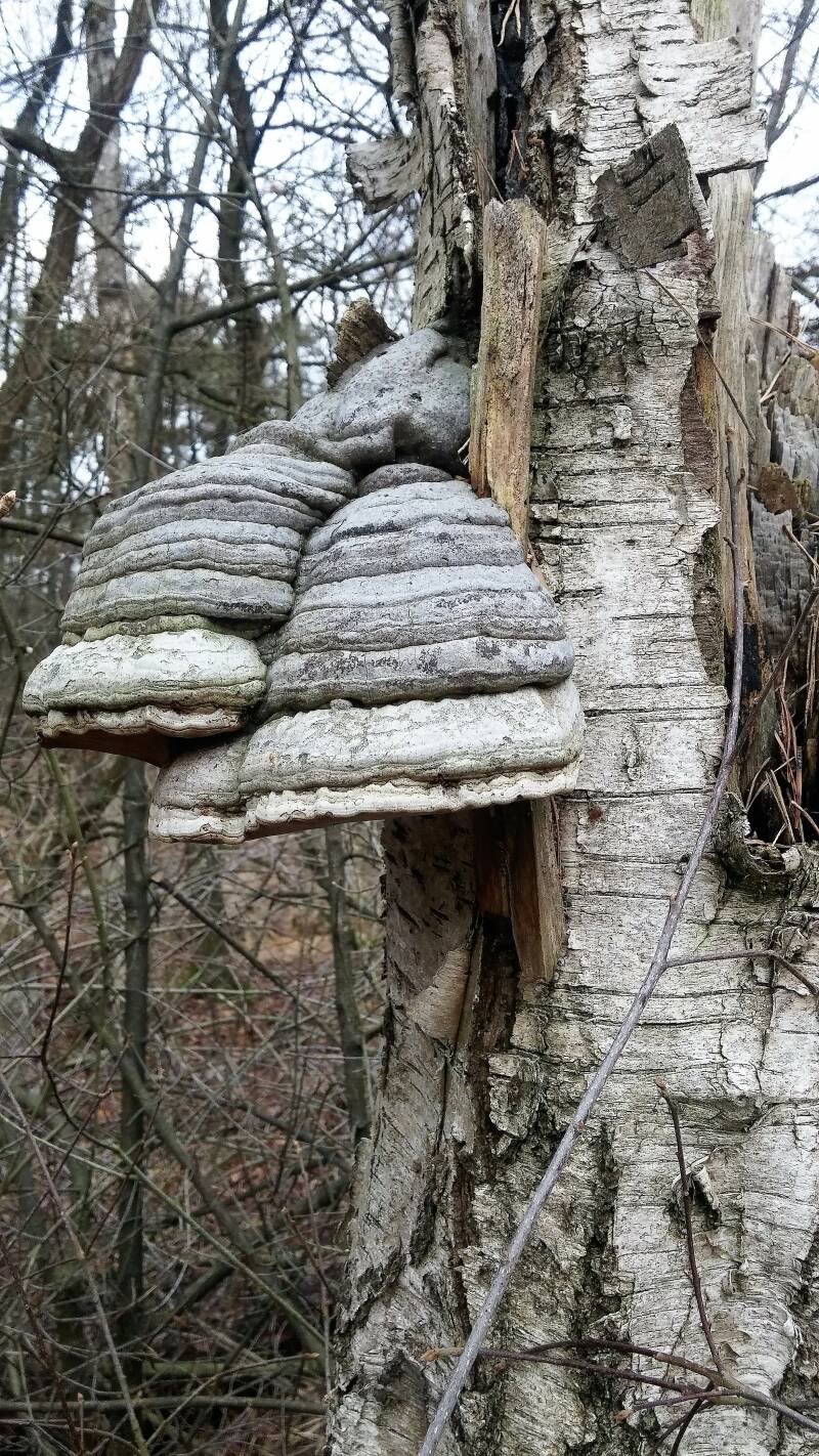 Lopend over mooie bospaden zag ik hier en daar fraaie zwammen waarvan één aan een dode stam van een berk en anderen met fraaie kleuren op dood hout wat op de grond lag.