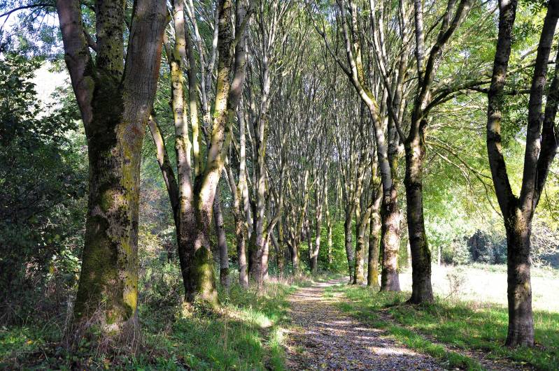 routebeschrijving en loop je door een mooi bosgebied waar je bomen ziet met de bekende maretakken. In Limburg komen die veel voor.